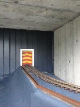 Der Anlageteil Süd, Ausfahrt der Bahn durch das Garagentor-Fenster, war über viele Jahr nur zur Weihnachtszeit in Betrieb.