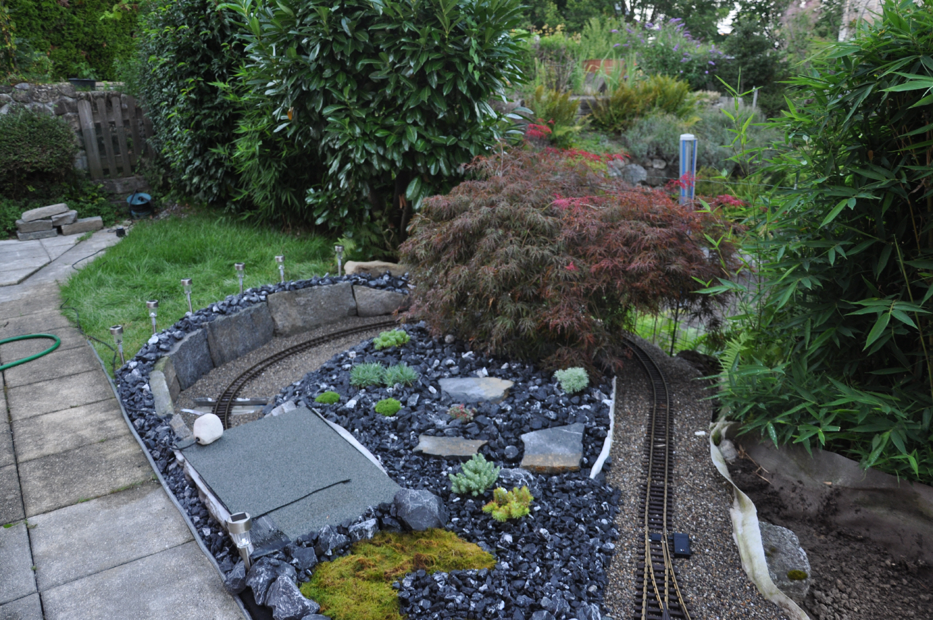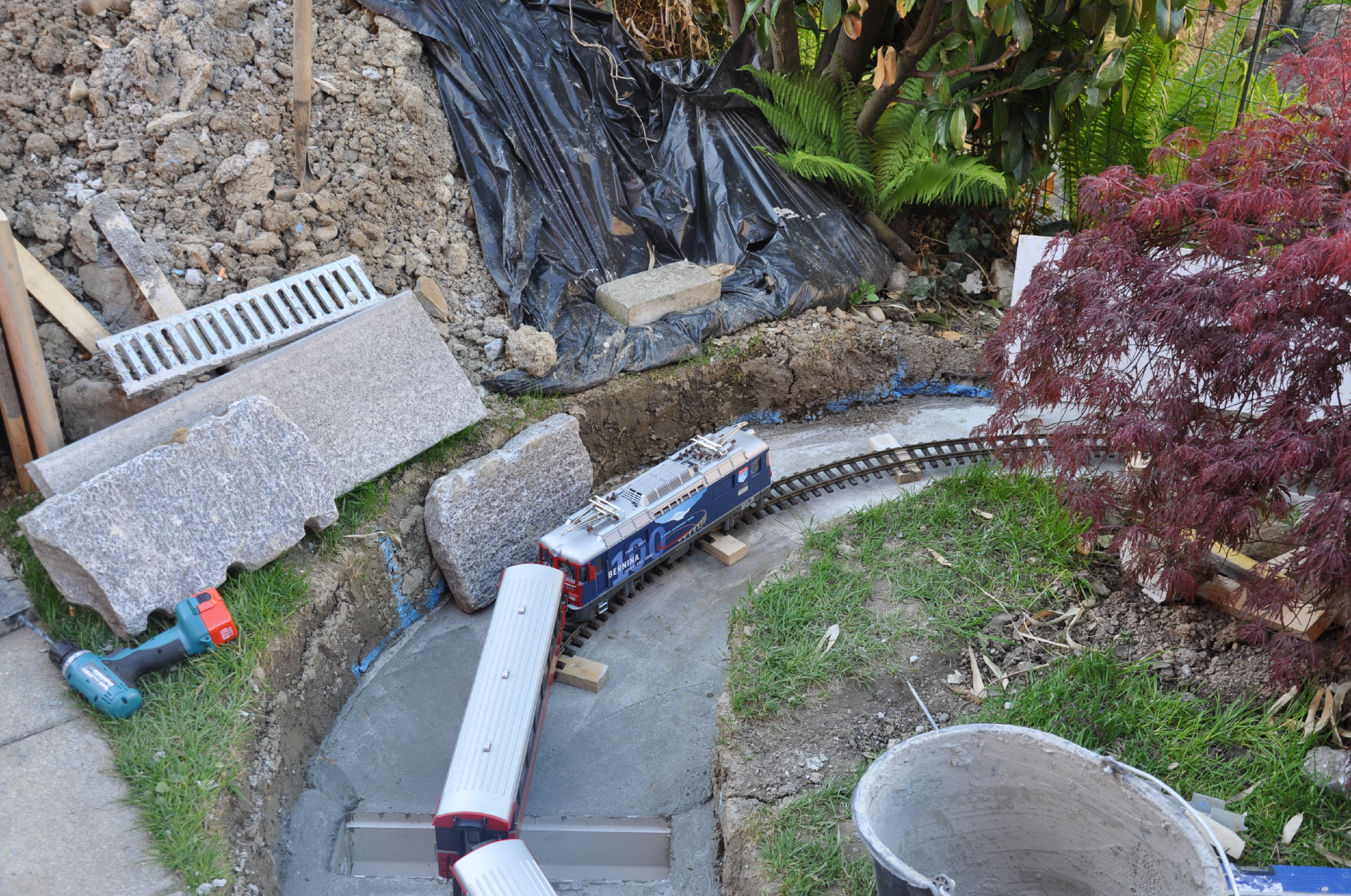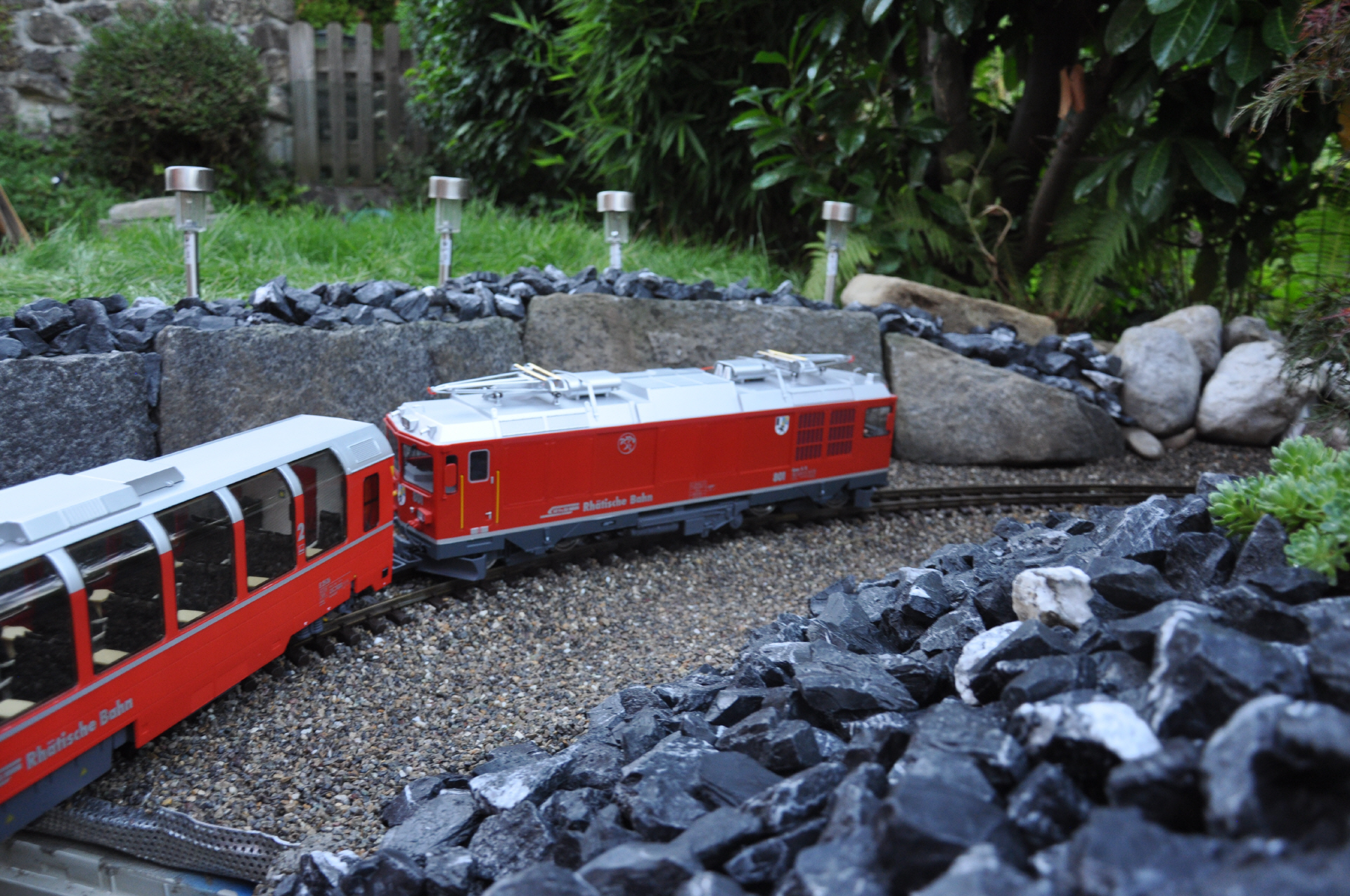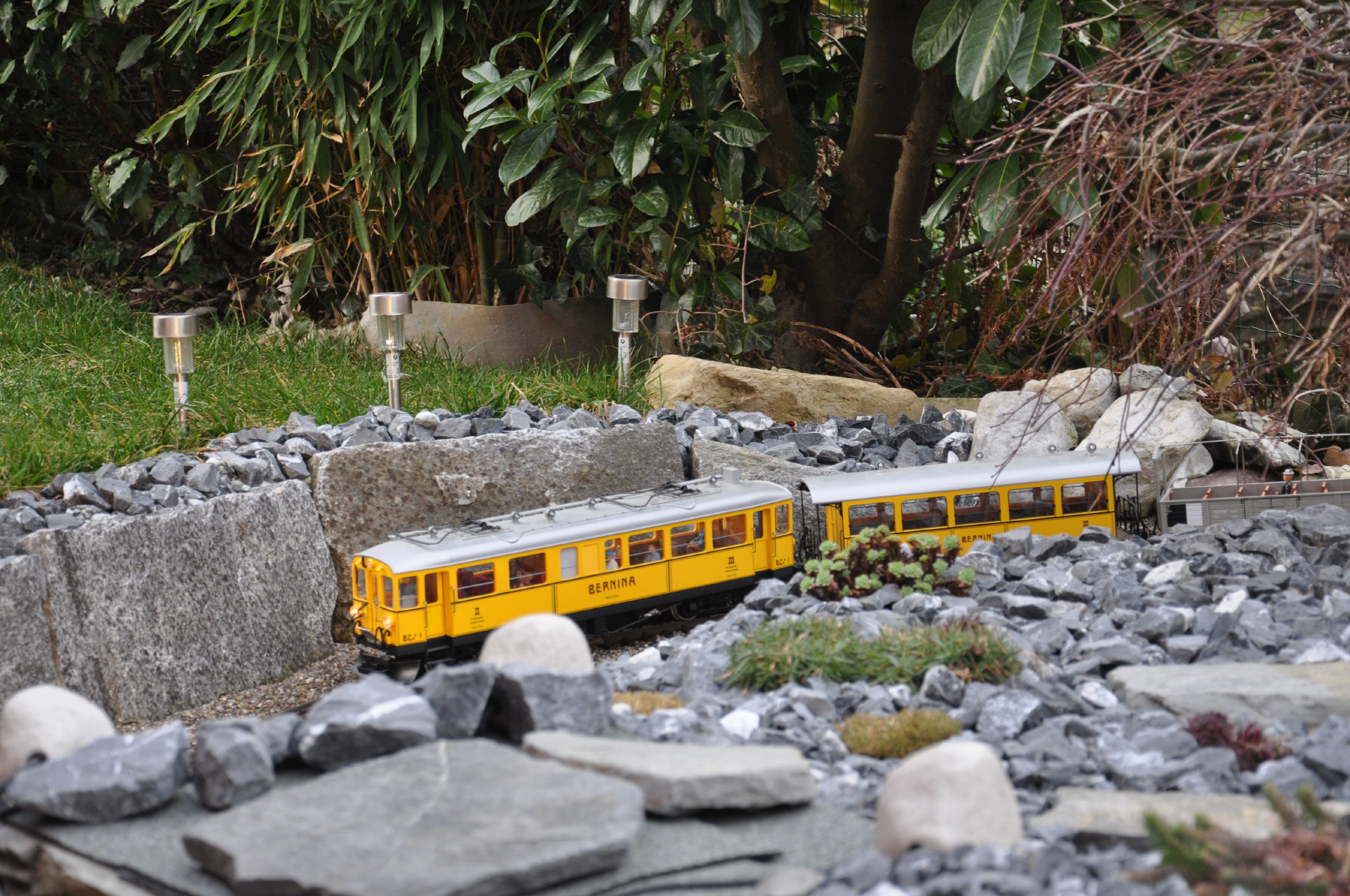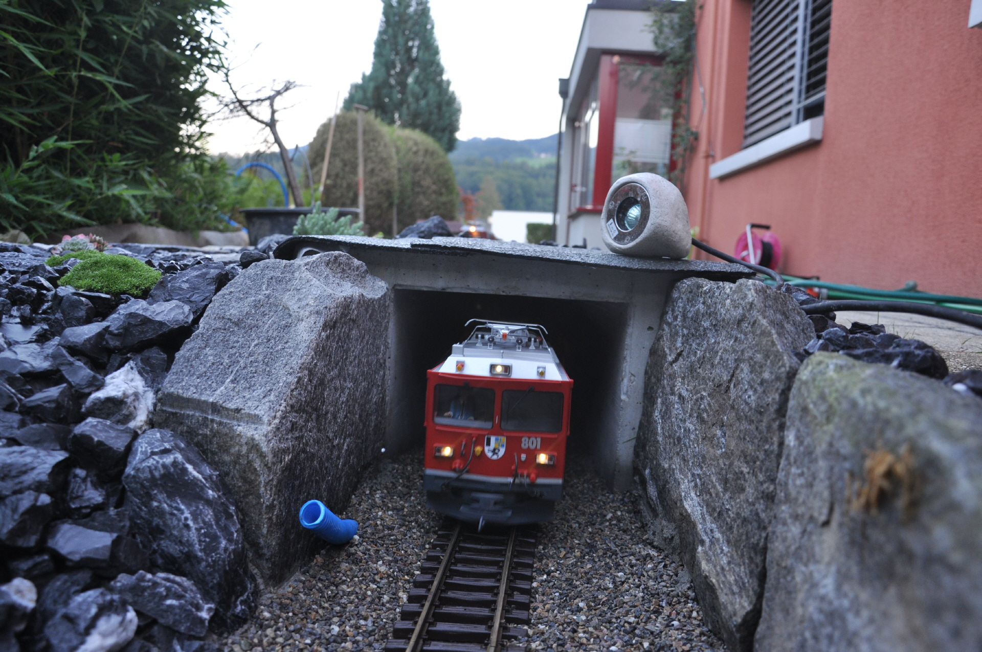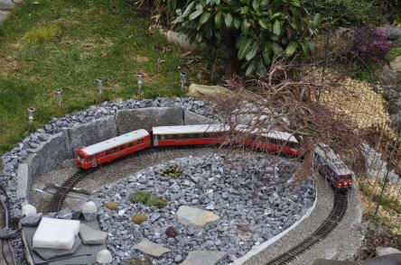 Nach dem Bahnhof Bambus durchfährt der Zug eine Kurve mit fast 270 grad. Dabei überwindet er die Höhe, um anschliessend in den darunter liegende Tunell einzufahren, welcher den Zug in den Tankraum führt.