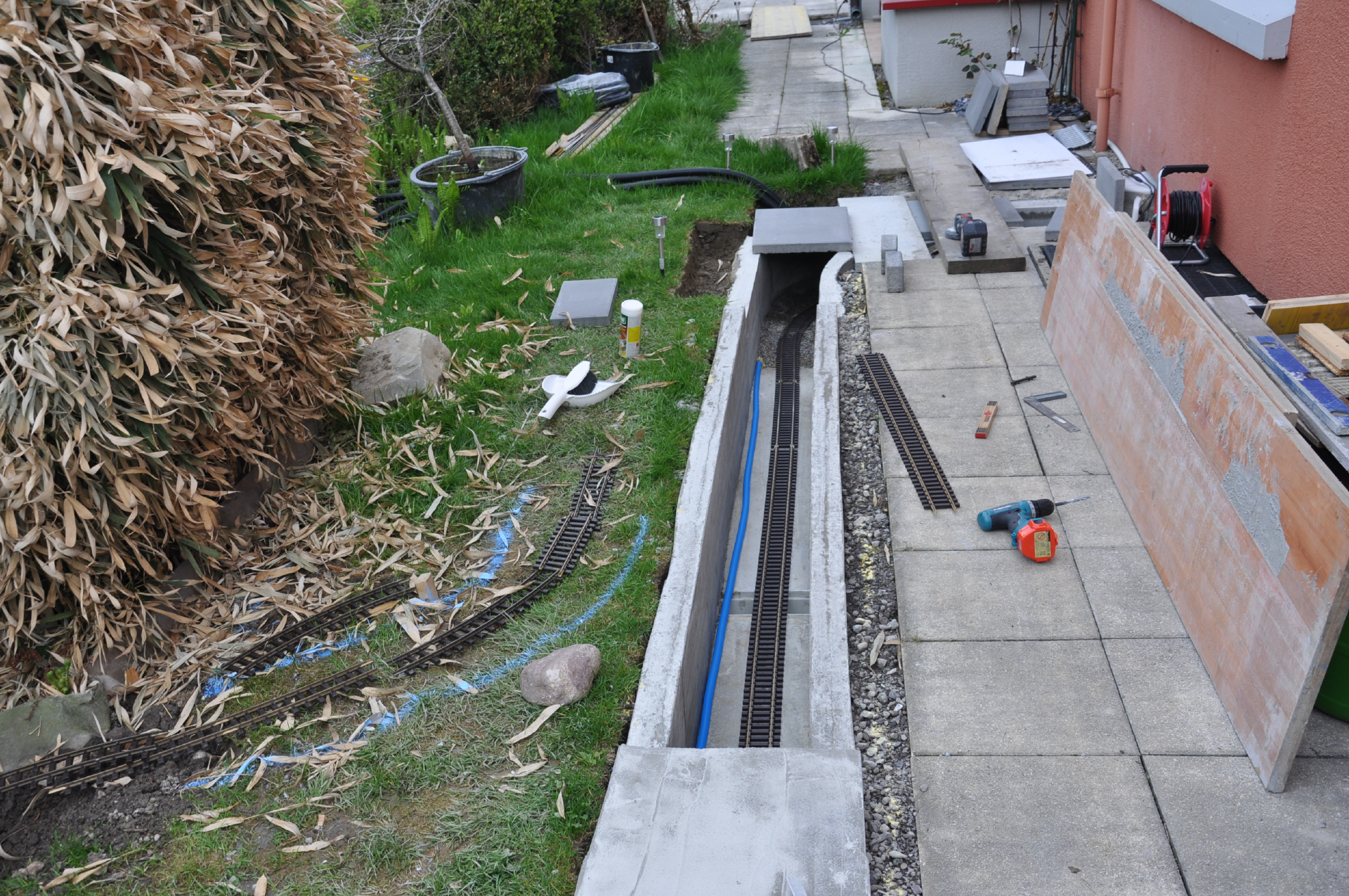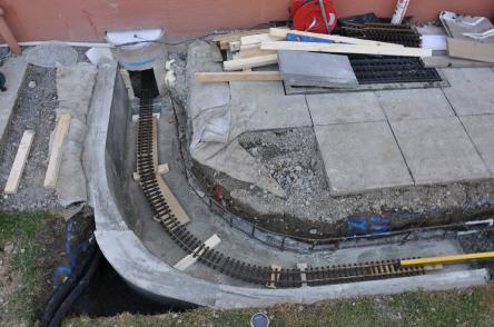 Die Rampe, respektieve der Tunell, welcher die Züge durchfahren müssen, damit sie nach dem Bahnhof Bambus die richtige Höhe erreichen, um in den Tankraum einzufahren.
