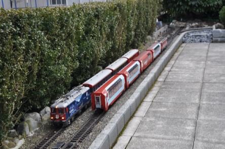 Die Strecke führt von der Garage durch den Tankraum mit Ausweichstelle via Steigungstunell in den Garten.